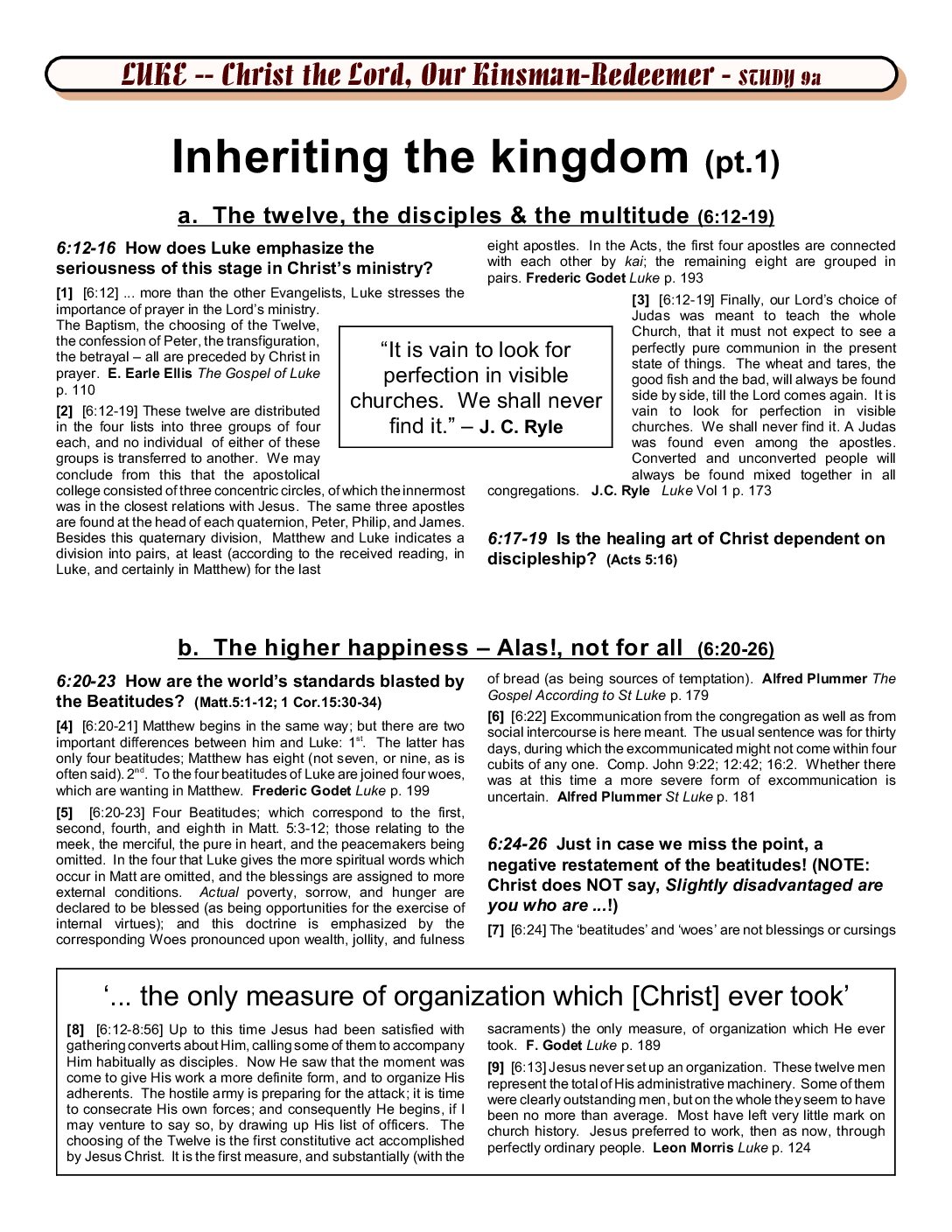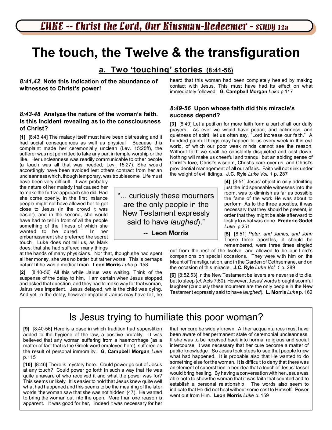 Study 12a - The Touch, the Twelve, and the Transfiguration Pt. 1