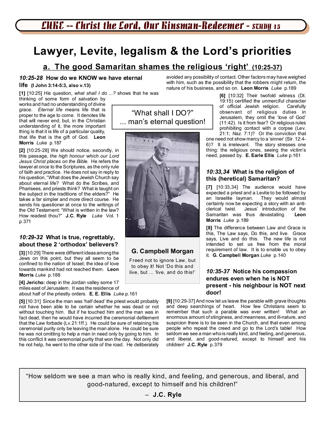 Study 15 - Lawyer, Levite, Legalism, and the Lord's Priorities