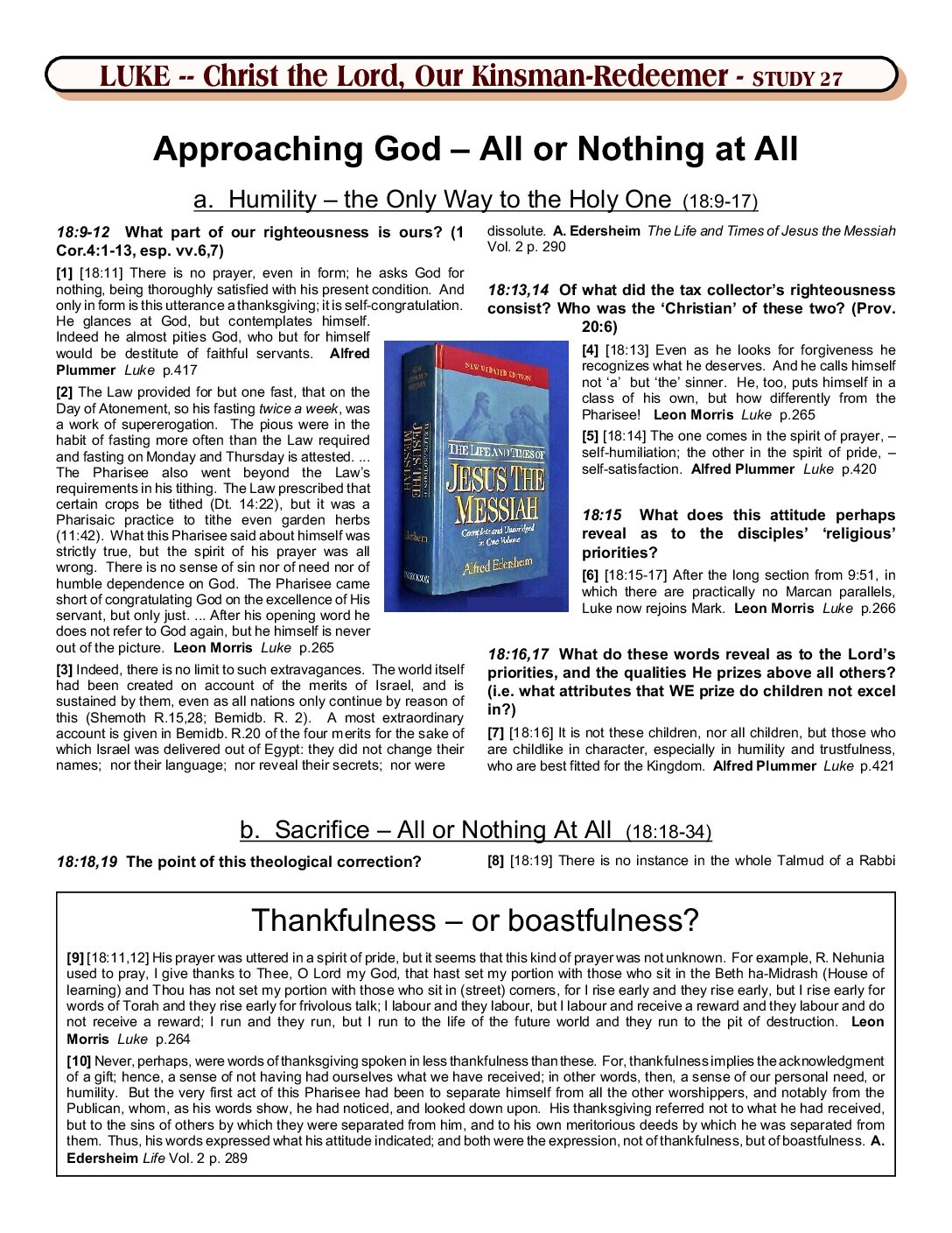 Studies 25 & 26 - Not of Necessity, But Out of Thanksgiving